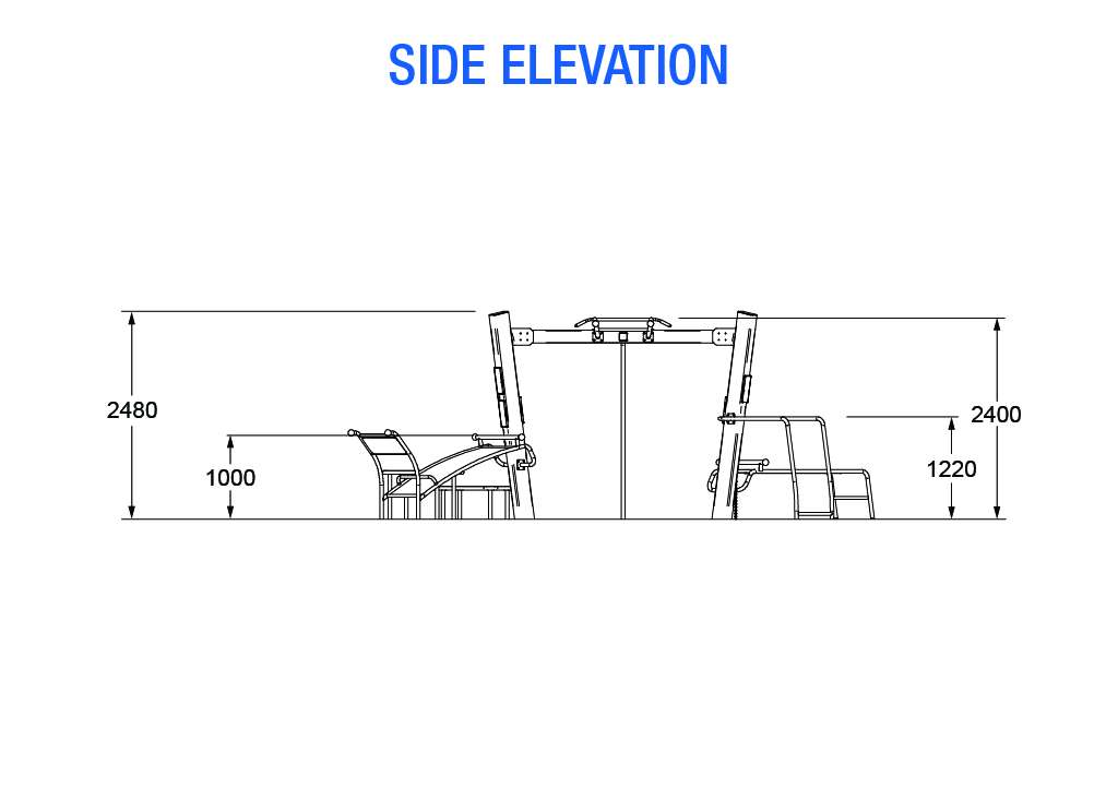 The Nitro Gladiator Cage is the all-in-one full body workout unit. Stations include dip bars, an adjustable height bar, mid-height roman rings, an inverted bench, flat bench, plyometric platforms, Swedish bars and monkey bars. This combination is good for up to seven users, catering for user skill levels from beginner to elite.