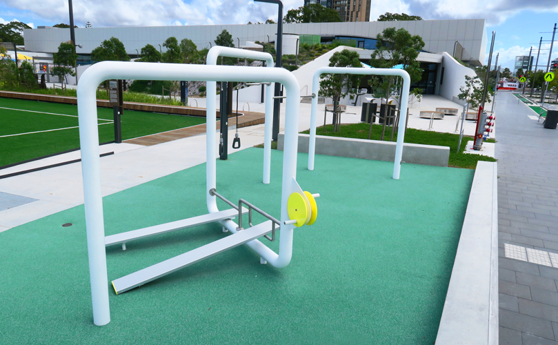 This sculptural piece in Sydney’s inner city is lovely on the eye – but did you know it serves a functional purpose too? This impressive fitness ensemble is an example of just how seamlessly Urbanfit equipment can find its place in a landscape.