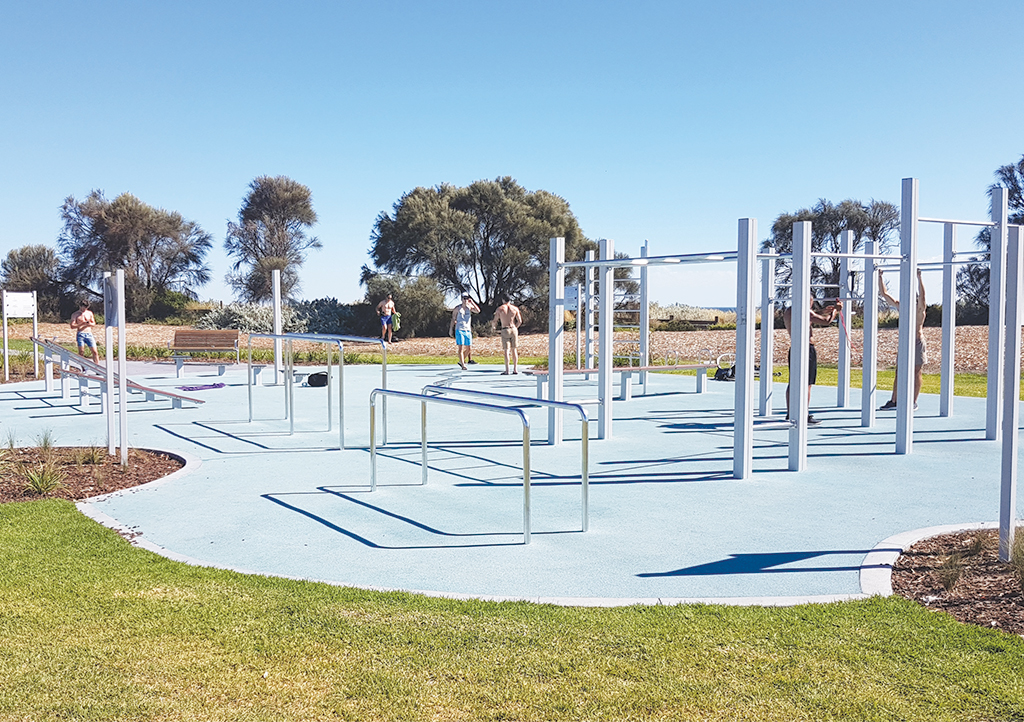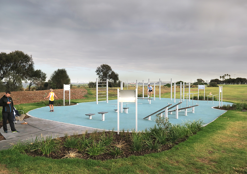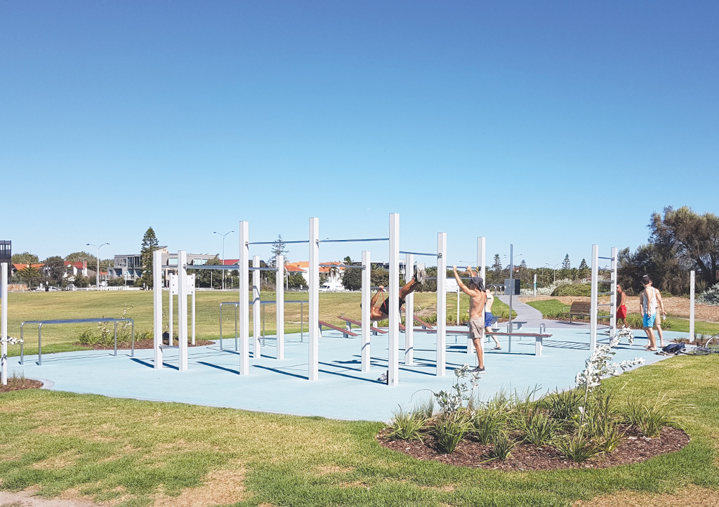 The accessible UrbanFiT community fitness area at MO Moran Reserve was designed to cater for all skill levels, from beginner to elite, and with several muscle groups targeted for a full body workout.